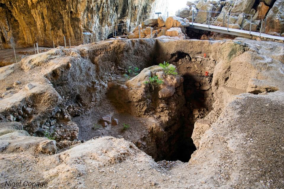 And during this period the main area of occupancy shifted from within the cave to the coastal plain which separated it from the sea (now submerged). Terraces were built to enable the growing of crops and it is thought that there was a village or settlement on this plain although it has yet to be found (underwater investigations are ongoing).